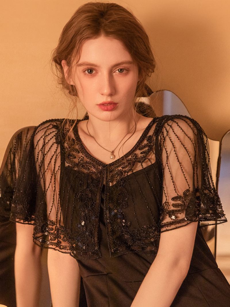 Capa Feminina Lantejoulas Transparentes Com Decote Em V Década 1920