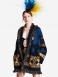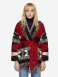 Cardigã Feminino Jacquard Marinho Escuro Com Borla E Cinto Mistura Lã Suéter Casual