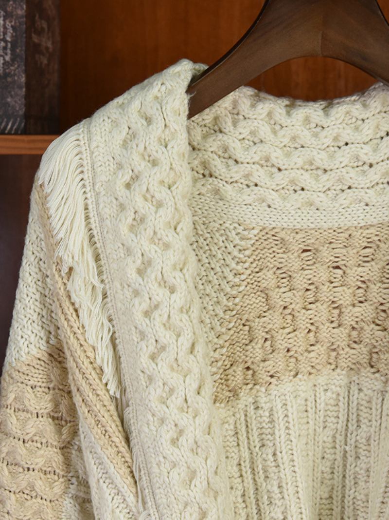 Cardigãs Femininos Crochê Damasco Com Borla E Cinto Mistura Lã Suéter Casual