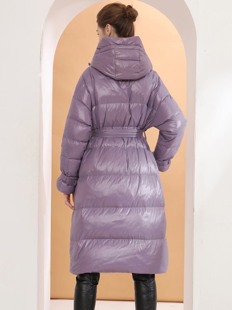 Casaco Com Capuz Roxo Longo Soprador Cinto Inverno Para Mulheres