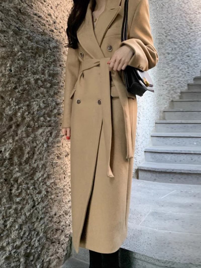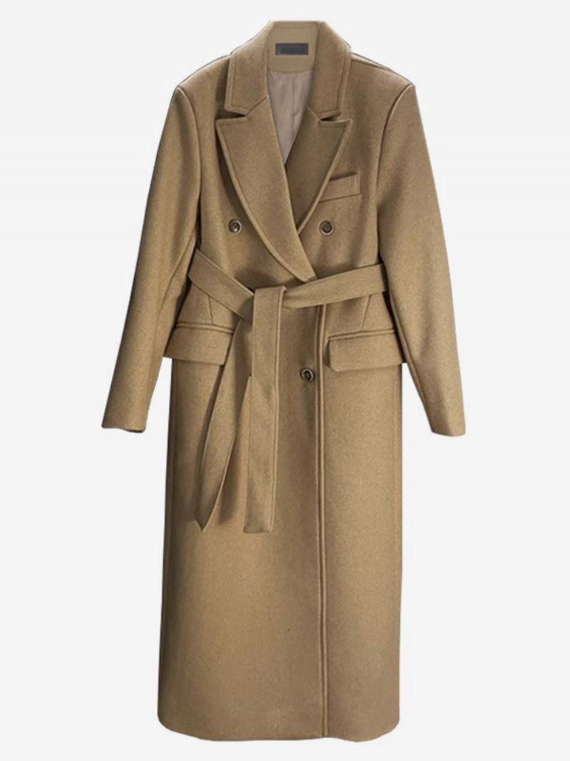 Casaco Feminino Entalhado Lapela Duplo Breasted Com Cinto Casacos Inverno