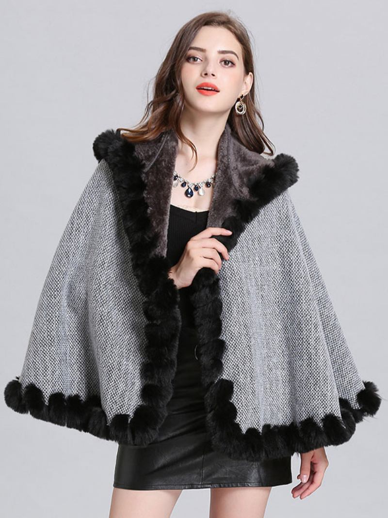 Casaco Feminino Poncho Com Capuz Borgonha Capa Inverno