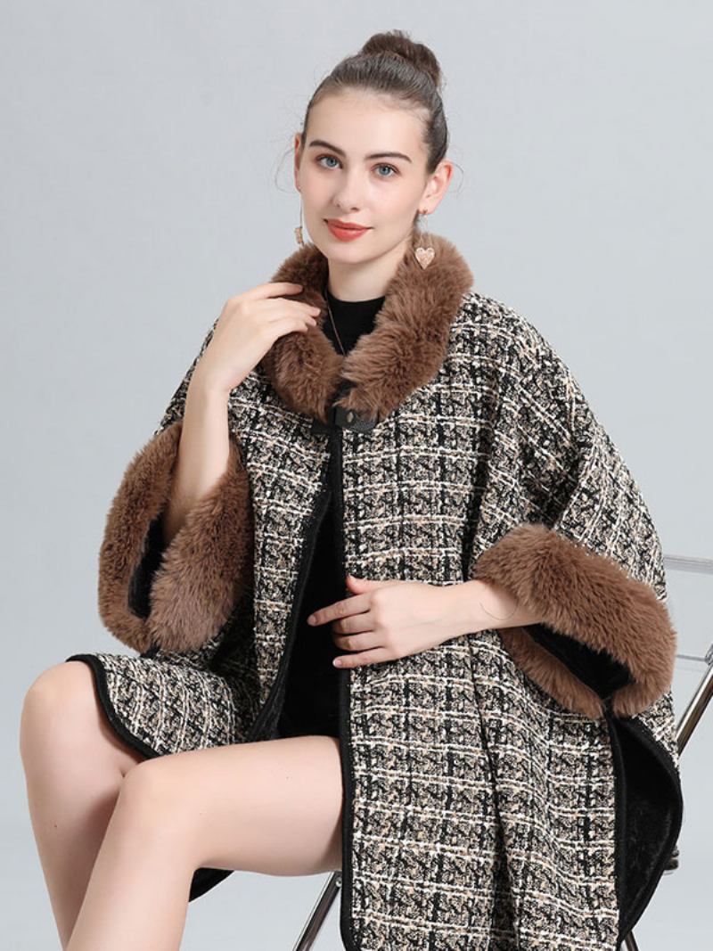 Casaco Feminino Poncho Xadrez Capa Primavera
