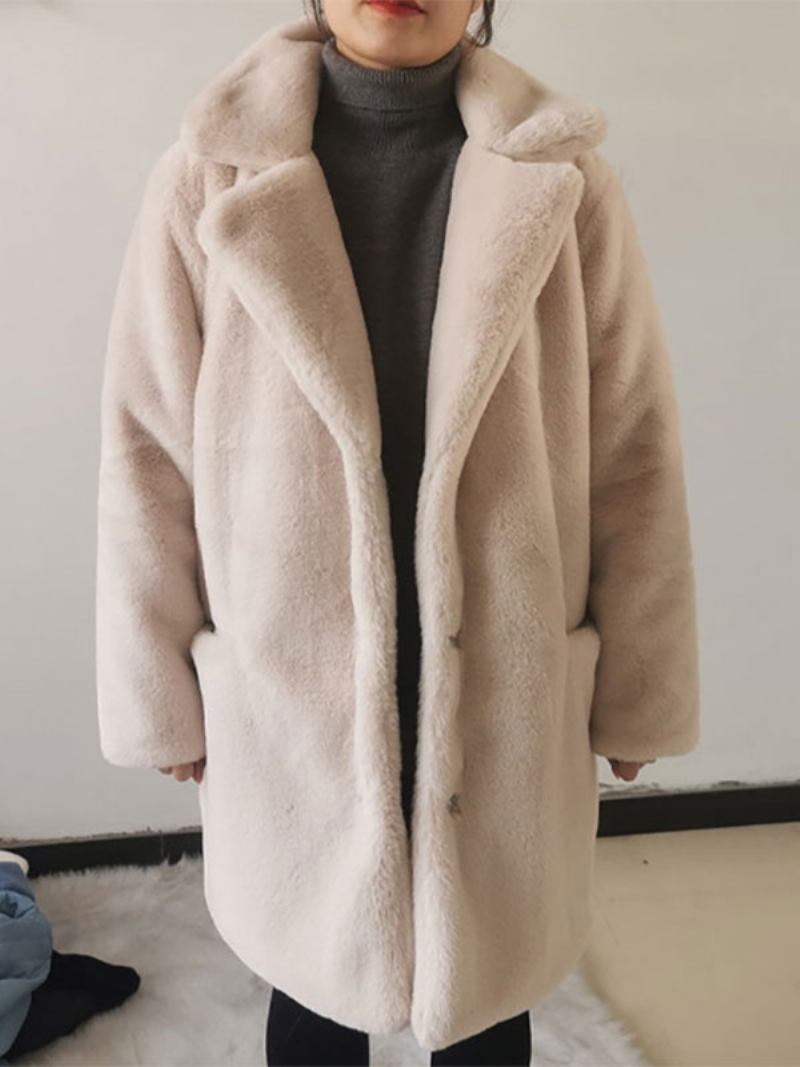 Casaco Pele Falsa Pelúcia Inverno Midi Outerwear Para Mulheres