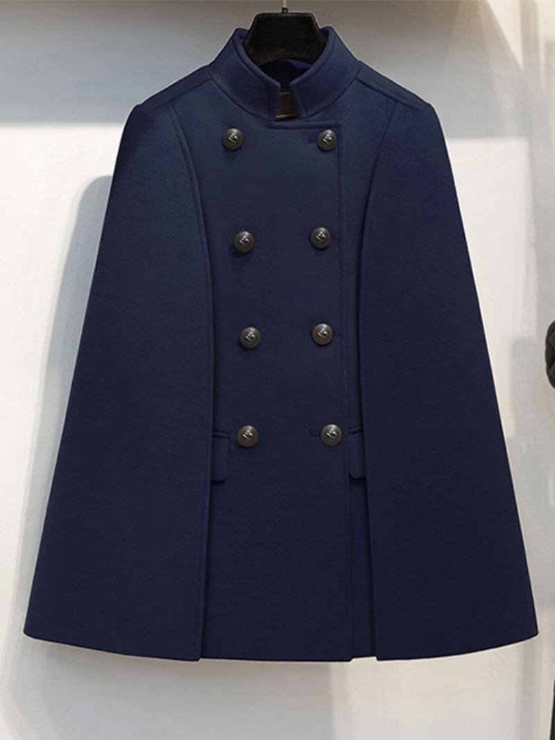 Casaco Poncho Lã Com Gola Dupla Breasted Feminino Capa Externa