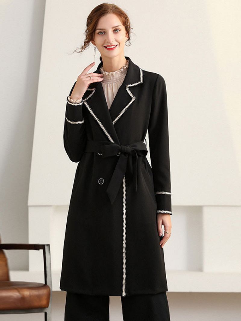 Casaco Trench Feminino Com Lapela Manga Comprida Outono