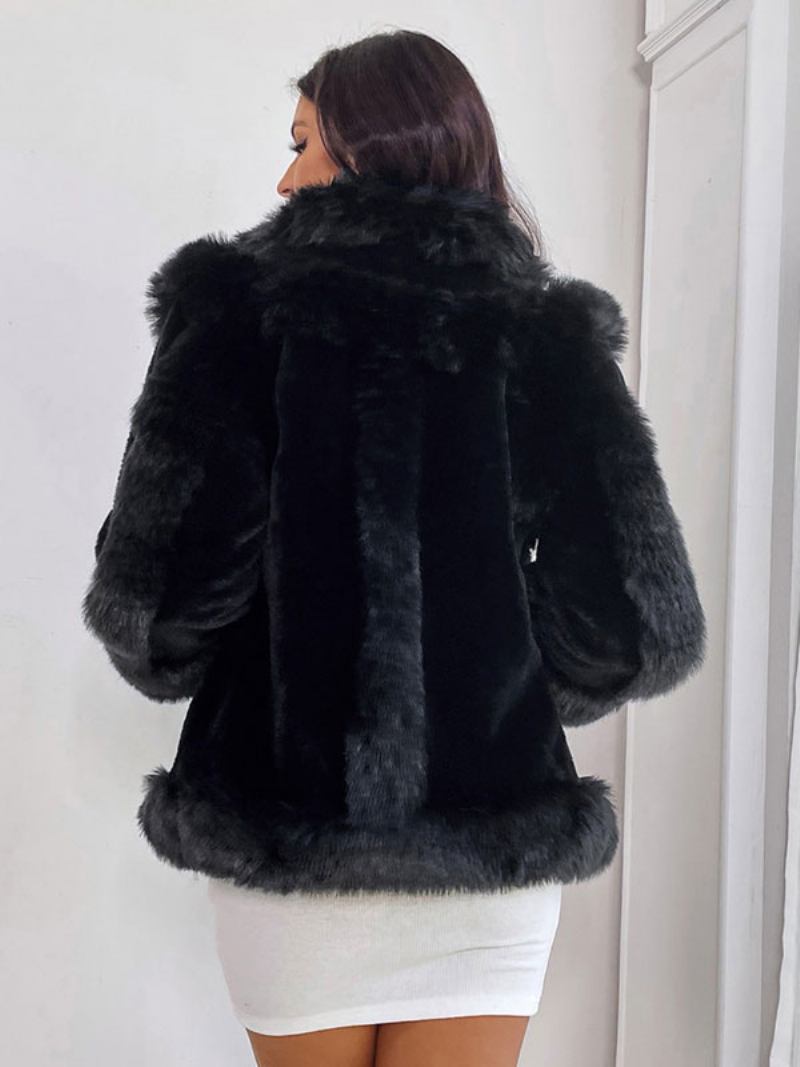 Casacos Pele Sintética Com Gola Preta Inverno Para Mulheres