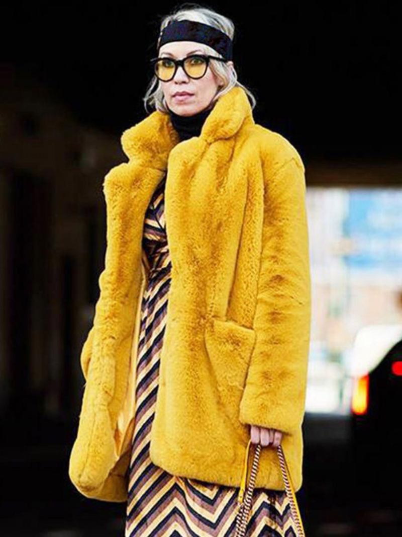 Casacos Pele Sintética Mangas Compridas Casual Casaco Oversized Gola Aberta Damasco Feminino