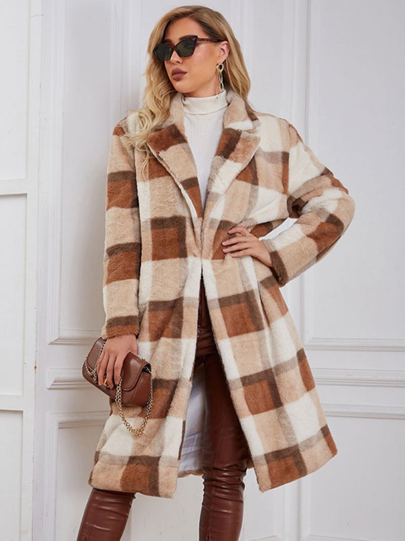 Casacos Pele Sintética Xadrez Inverno Para Mulheres
