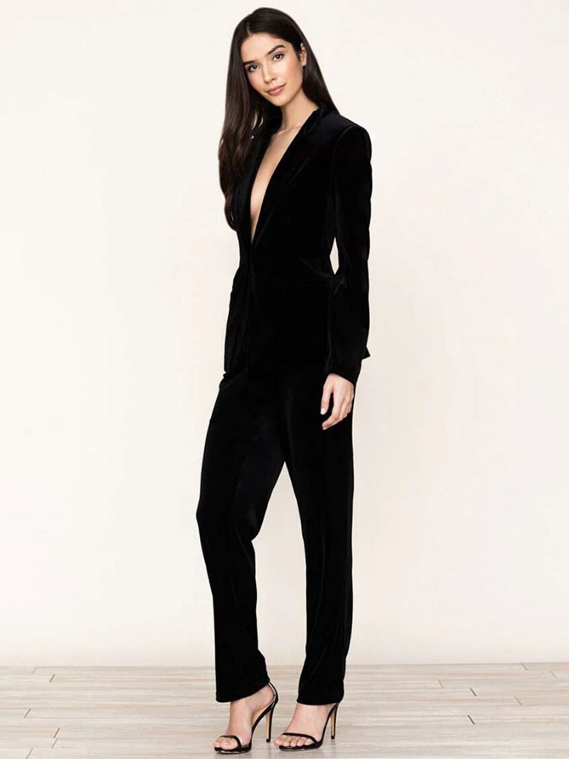Conjunto Blazer Veludo Duas Peças Roupa Primavera Outono Para Mulheres