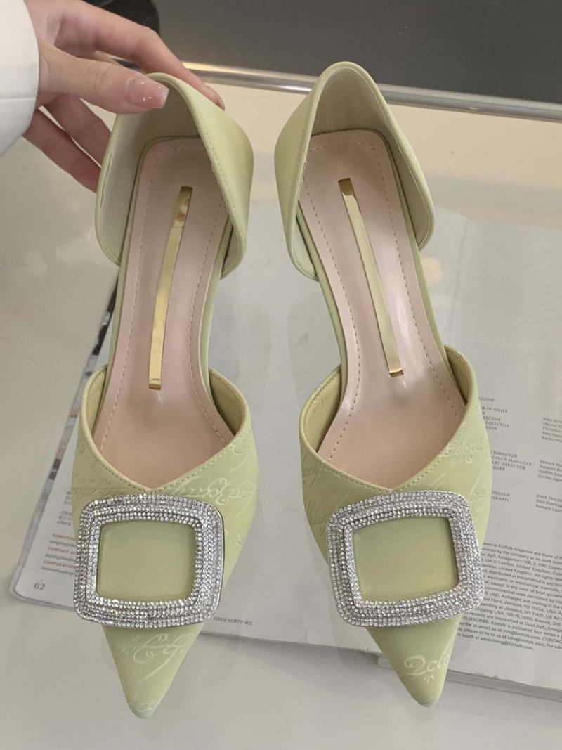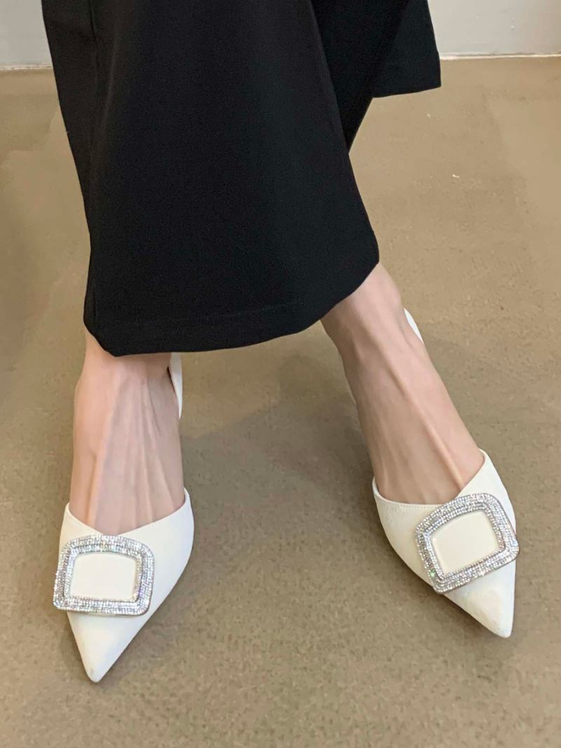 Feminino Salto Médio Baixo Tanga Strass Dedo Do Pé Apontado Gatinho Diariamente Bombas Casuais Preto