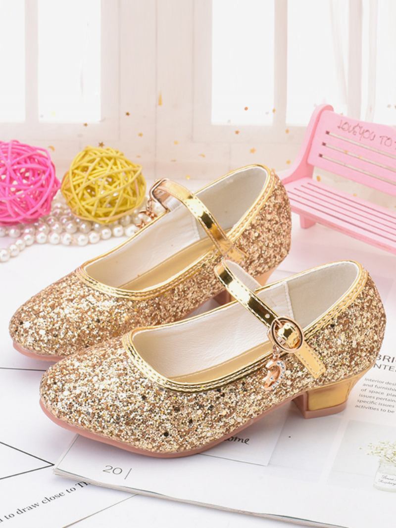 Florista Sapatos Ouro Lantejoulas Pano Strass Festa Para Crianças