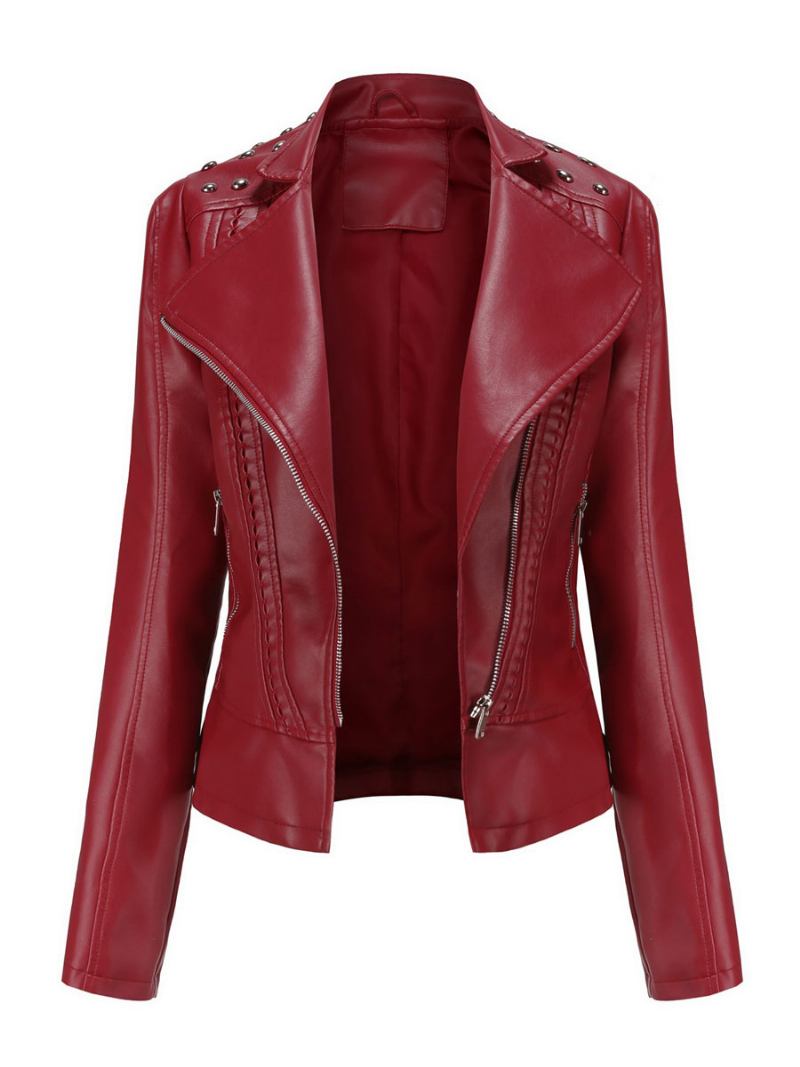 Jaqueta Couro Falso Rosa Pu Gola Rebite Zip Up Primavera Outono Street Biker Outerwear Para Mulheres