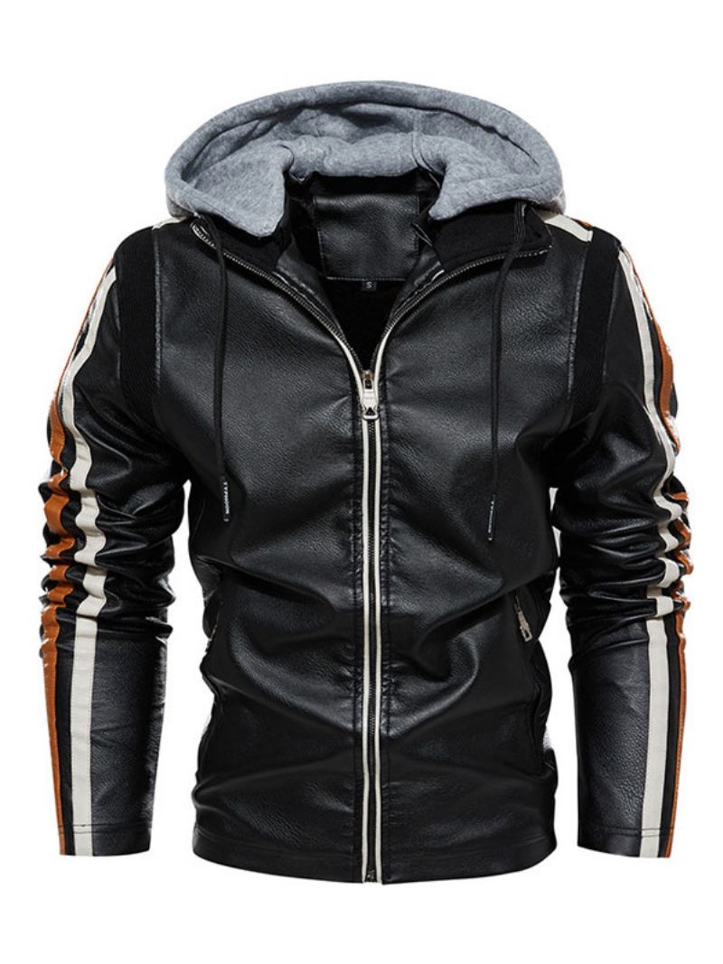 Jaqueta Couro Masculina Confortável Em Camadas Com Zíper Colorido Bloco Inteligente Moto Inverno Cru Branco