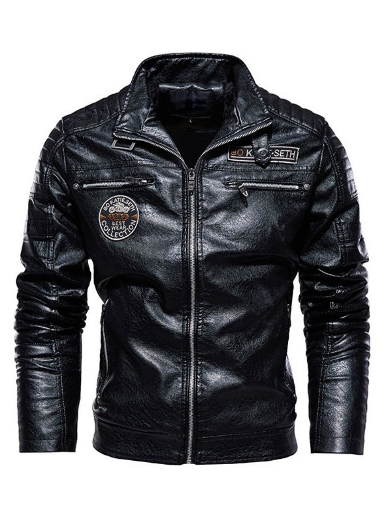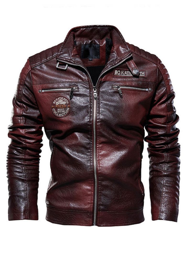 Jaqueta Couro Masculina Corta-vento Chique Inverno Borgonha Sobretudo Estiloso