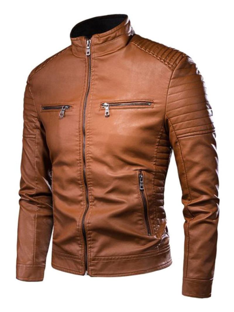 Jaqueta Couro Masculina Corta-vento Chique Outono Preto Casacos Inverno Legais