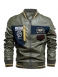 Jaqueta Couro Masculina Simples Em Camadas Com Zíper Geométrico Fashion Corta-vento Primavera Caçador Verde
