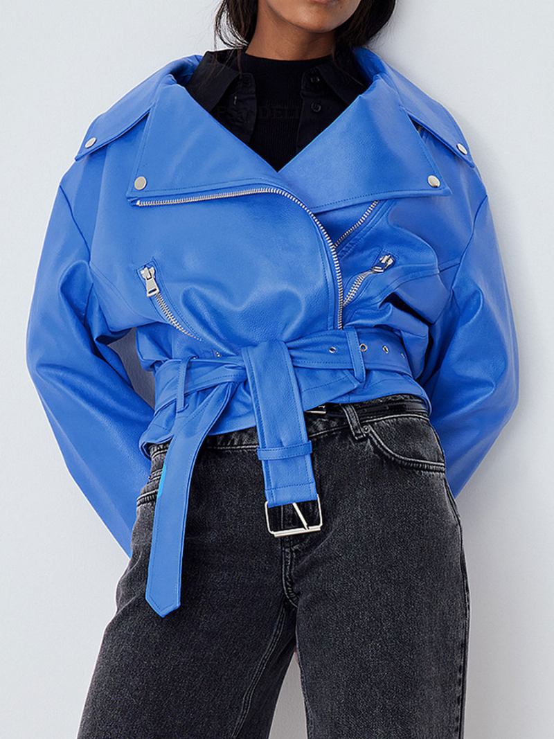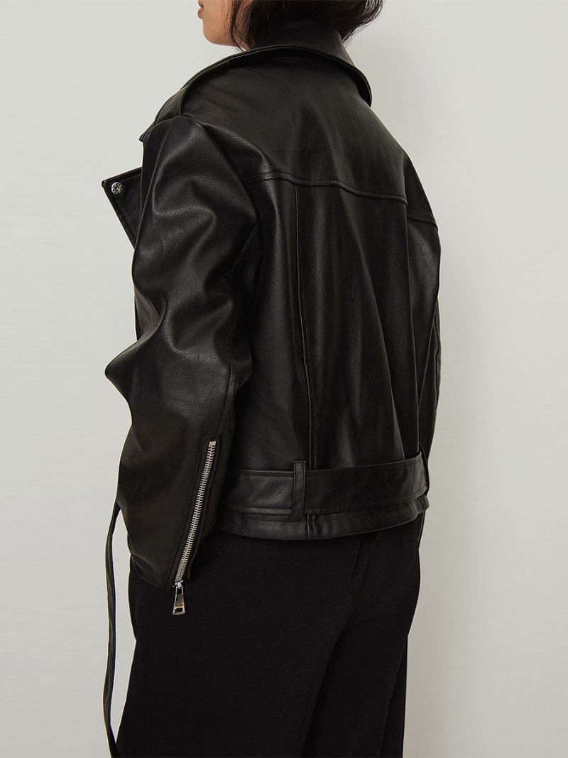 Jaqueta Feminina Com Gola Aberta E Zíper Em Couro Pu