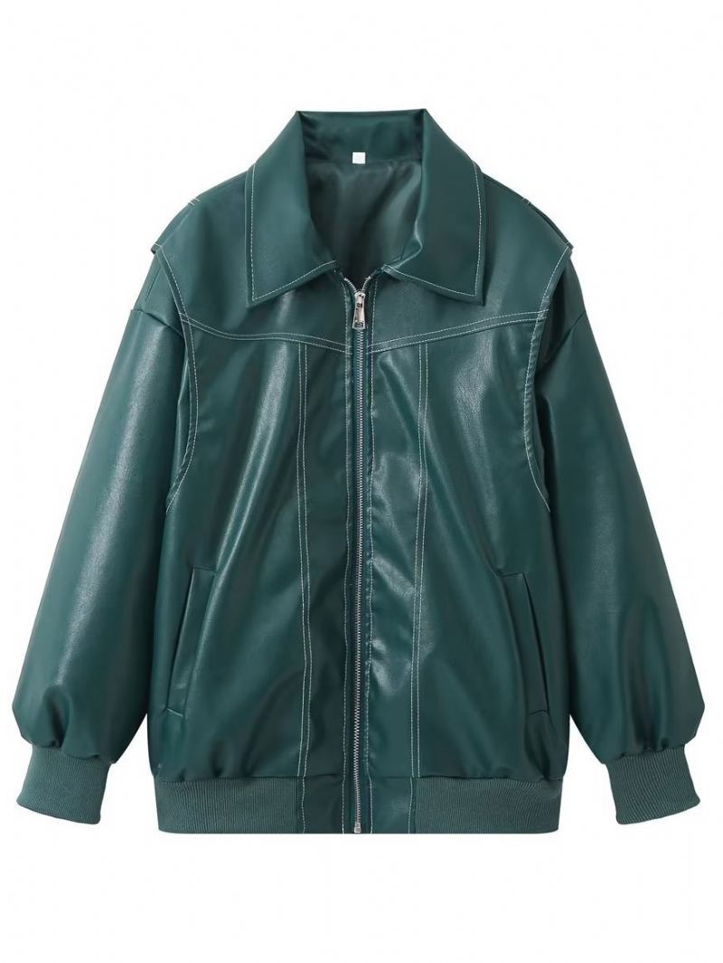 Jaqueta Feminina Couro Pu Vermelho Com Gola Mangas Compridas Zíper Jaquetas Casuais Diárias