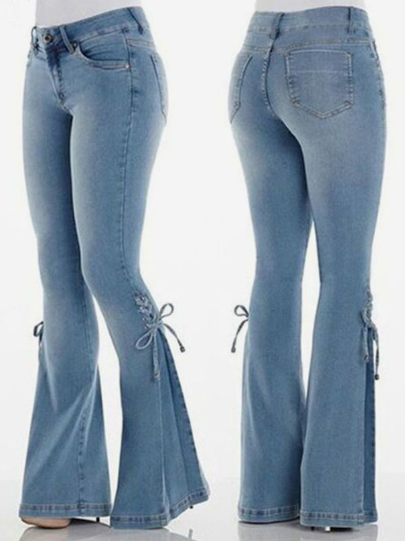 Jeans Flare Para Mulheres Com Renda E Cintura Média Sino Bottoms