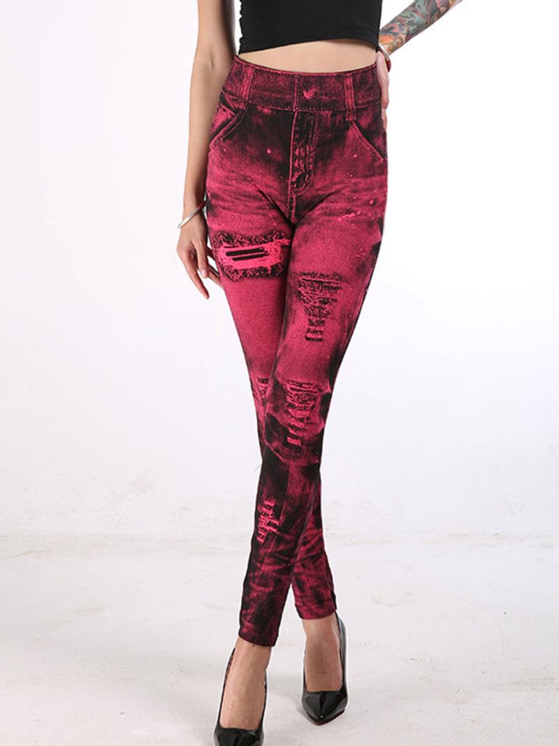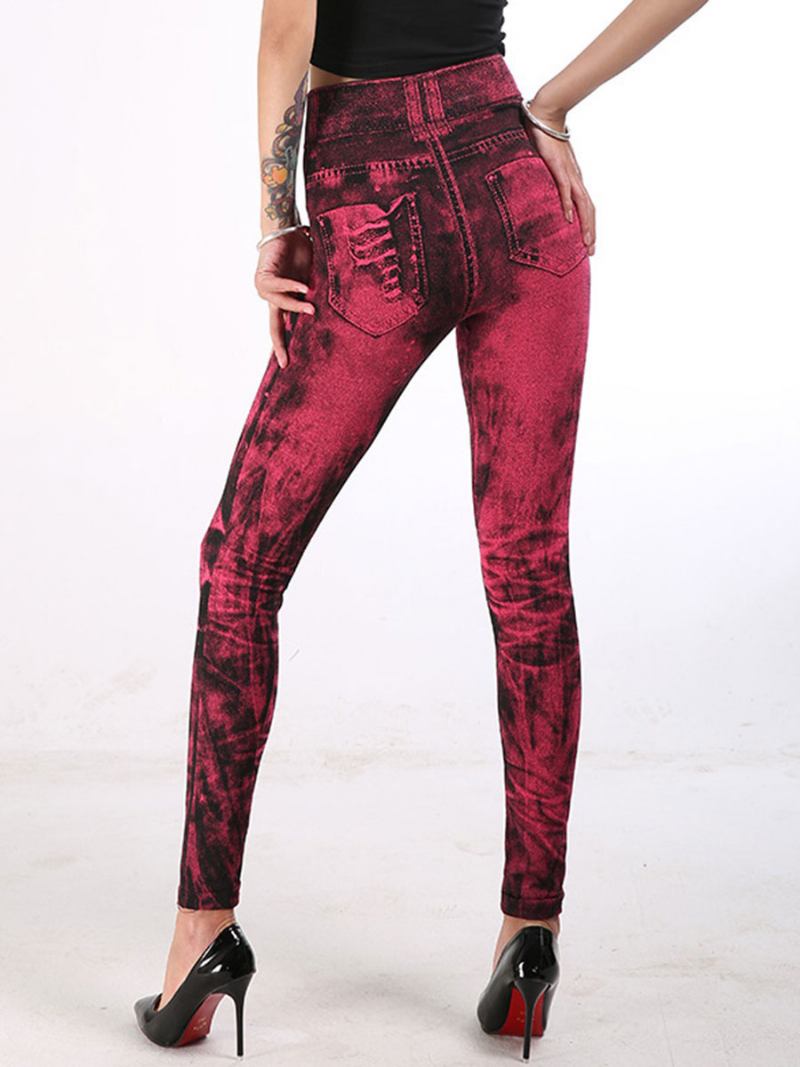 Leggings Cintura Alta Jeans Elásticos Como Parte Inferior Feminina