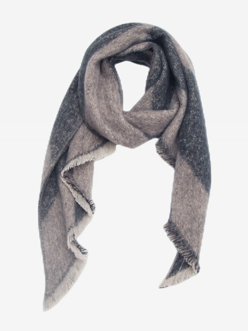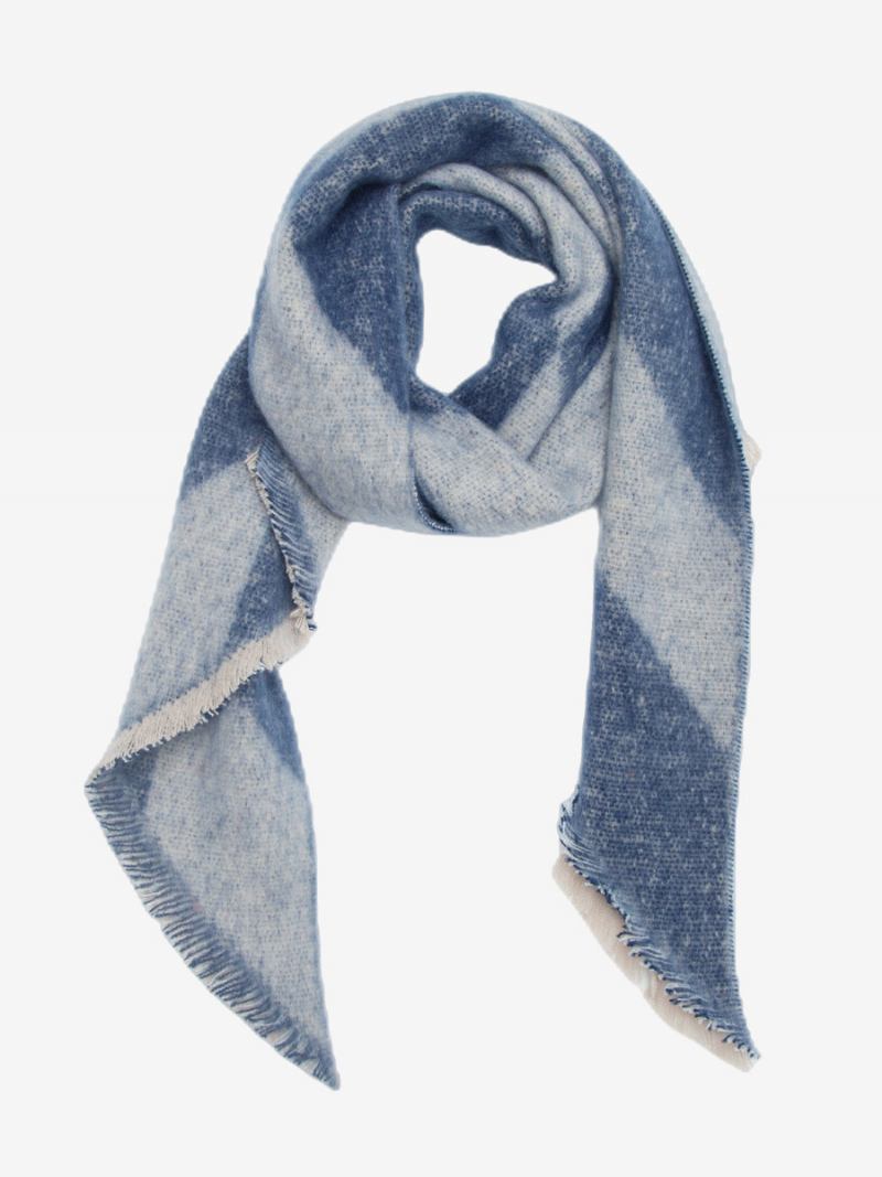 Lenço Feminino Dois Tons Com Acabamento Cílios Em Bloco Colorido Outono Inverno