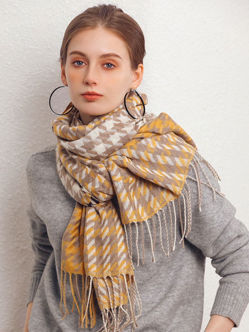 Lenço Feminino Encantador Xadrez Franja Fibra Inverno Quente Cachecóis Longos