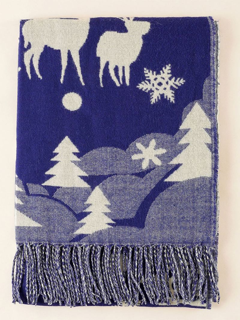 Lenço Para Mulheres Moda Natal Padrão Franja Inverno Quente Acc