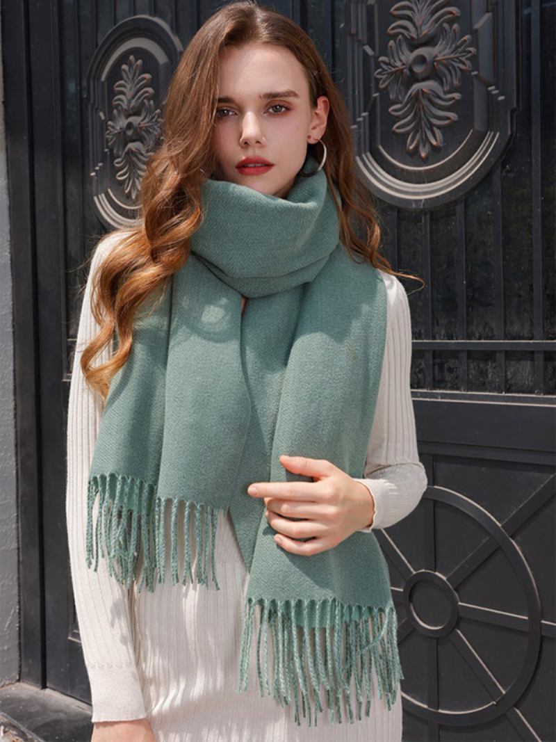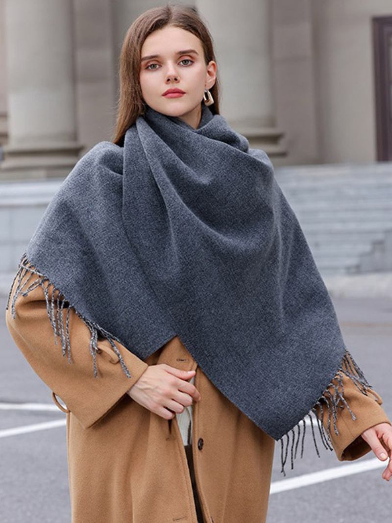 Lenço Reversível Cor Sólida Com Franjas E Lenços Chiques