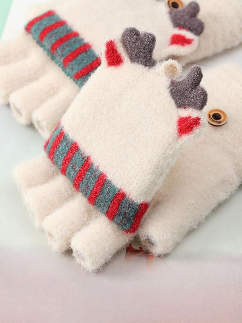Luvas Femininas Natal Padrão Presente Feriado Sem Dedos Para Casa Usar Inverno Quente Fofo Acc