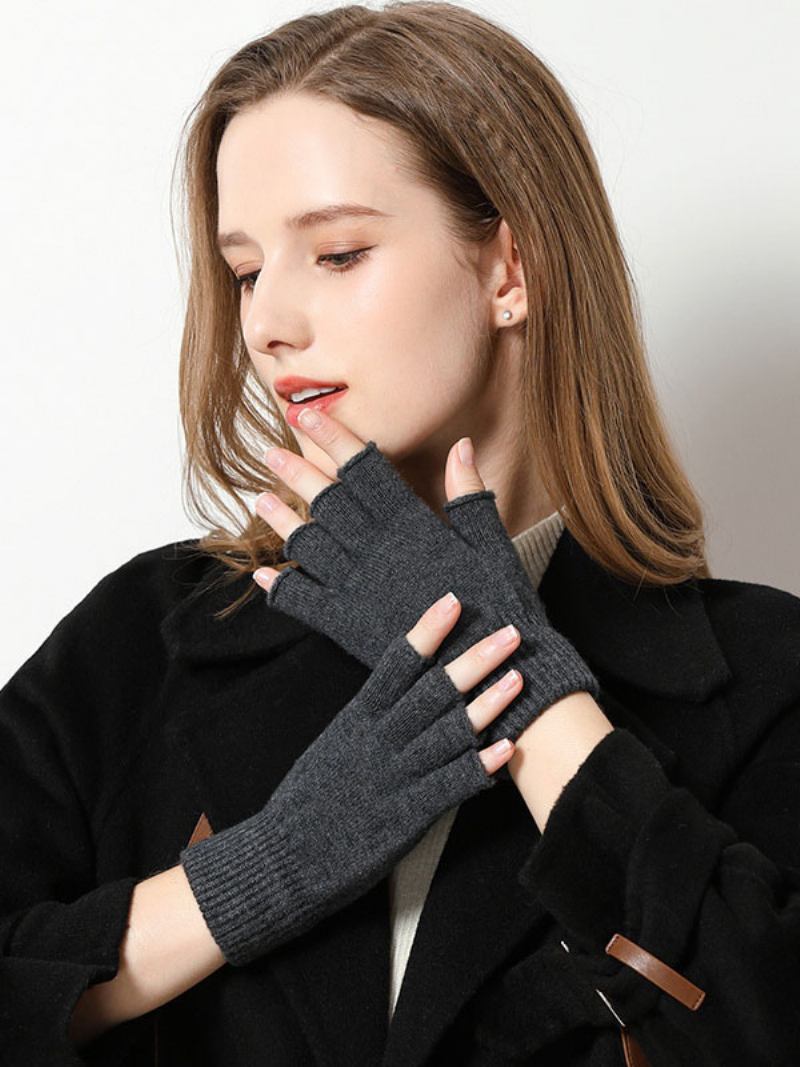 Luvas Femininas Sem Dedos Malha Quentes Inverno