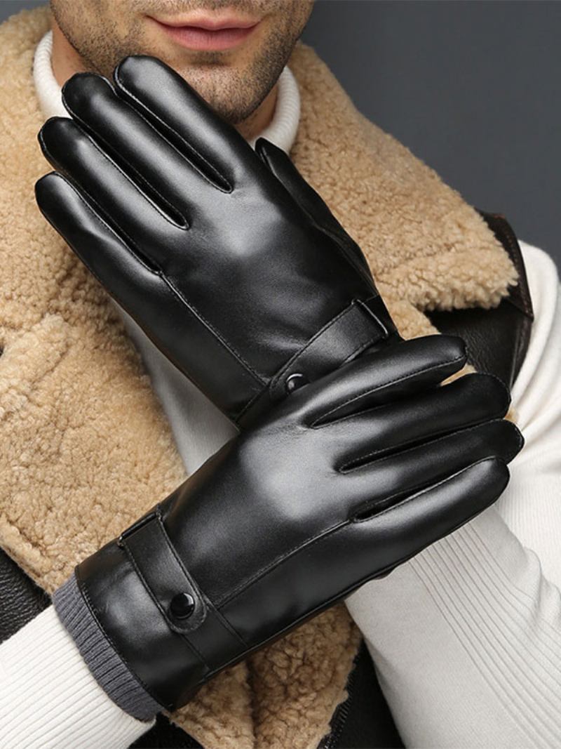 Luvas Para Homens Couro Pu Inverno Impermeáveis Quentes
