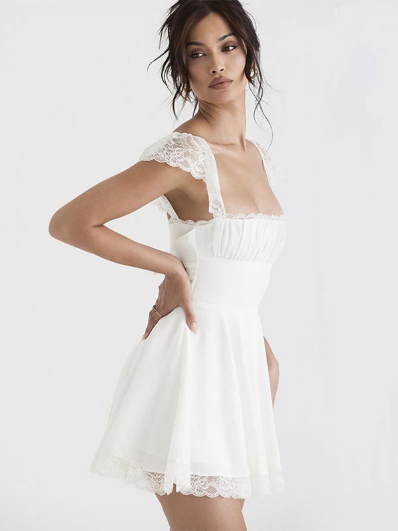 Mini Vestido Festa Feminino Sem Mangas Noiva Curto Renda