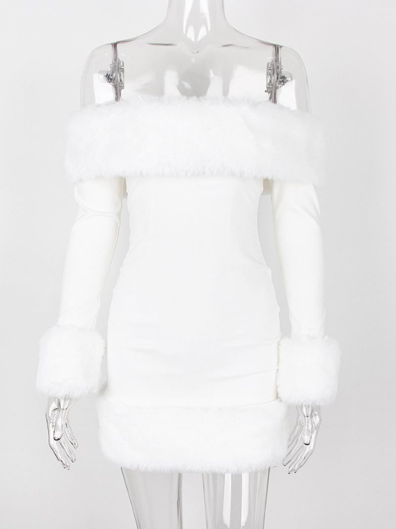 Minivestido Feminino Com Acabamento Em Pele Sintética Ombros Fora Vestidos Sexy Para Festa Aniversário