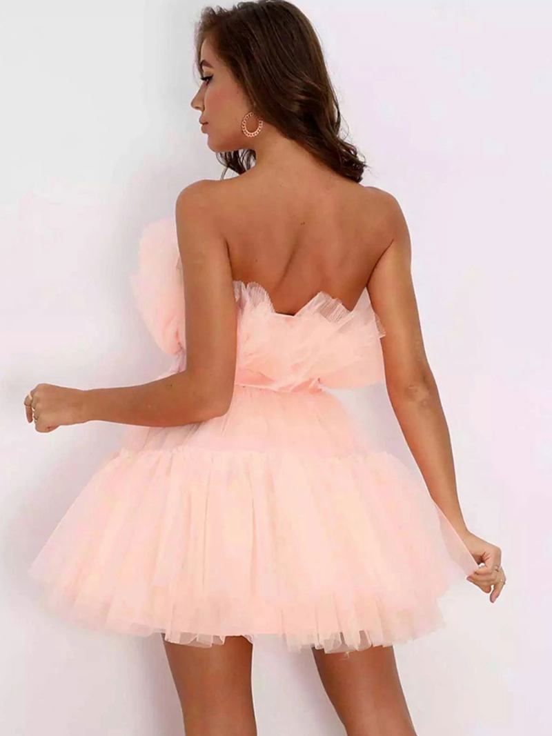 Minivestidos Femininos Tule Sem Alças Plissados Mangas Costas Nuas Vestido Em Camadas