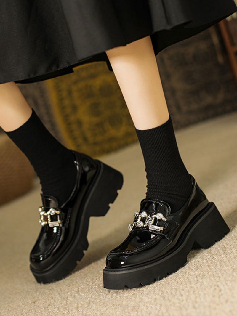 Mocassins Femininos Couro Pu Com Salto Grosso