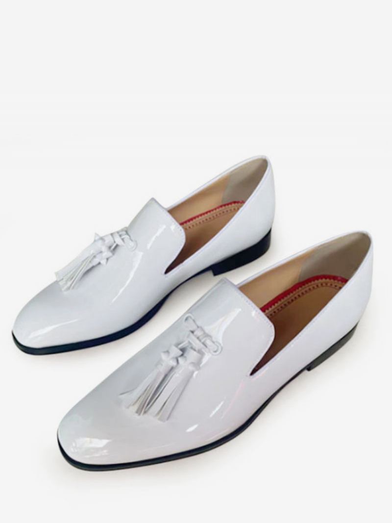 Mocassins Masculinos Com Borla E Couro Envernizado Bico Quadrado Festa Baile Sapatos Casamento