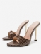 Mules Femininos Salto Agulha Marrom Aberto Com Estampa Cobra Padrão Deslizamento Em Pu Couro