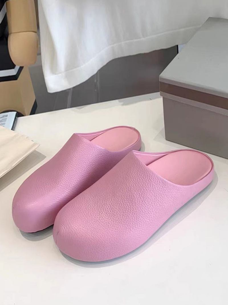 Mulheres Mulas Planas Rosa Com Bico Redondo Deslizam Em Chinelos