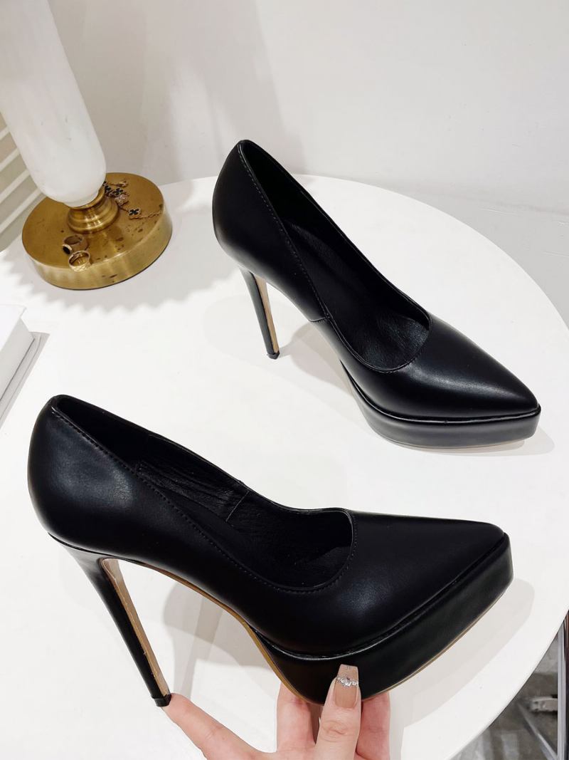 Mulheres Salto Alto Preto Plataforma Apontou Toe Bombas Agulha