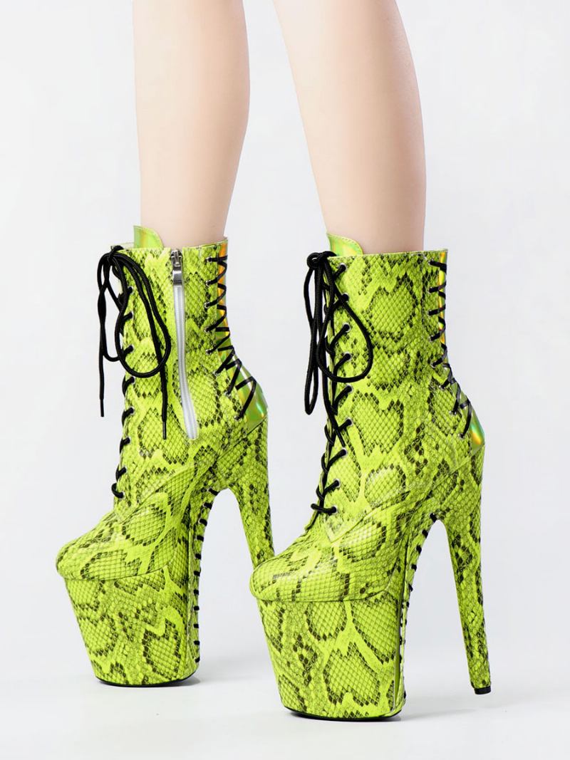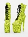 Mulheres Sexy Botas Dedo Do Pé Redondo Rendas Até Cobra Impressão Salto Stiletto Rave Clube Verde Coxa Altas Sobre O Joelho