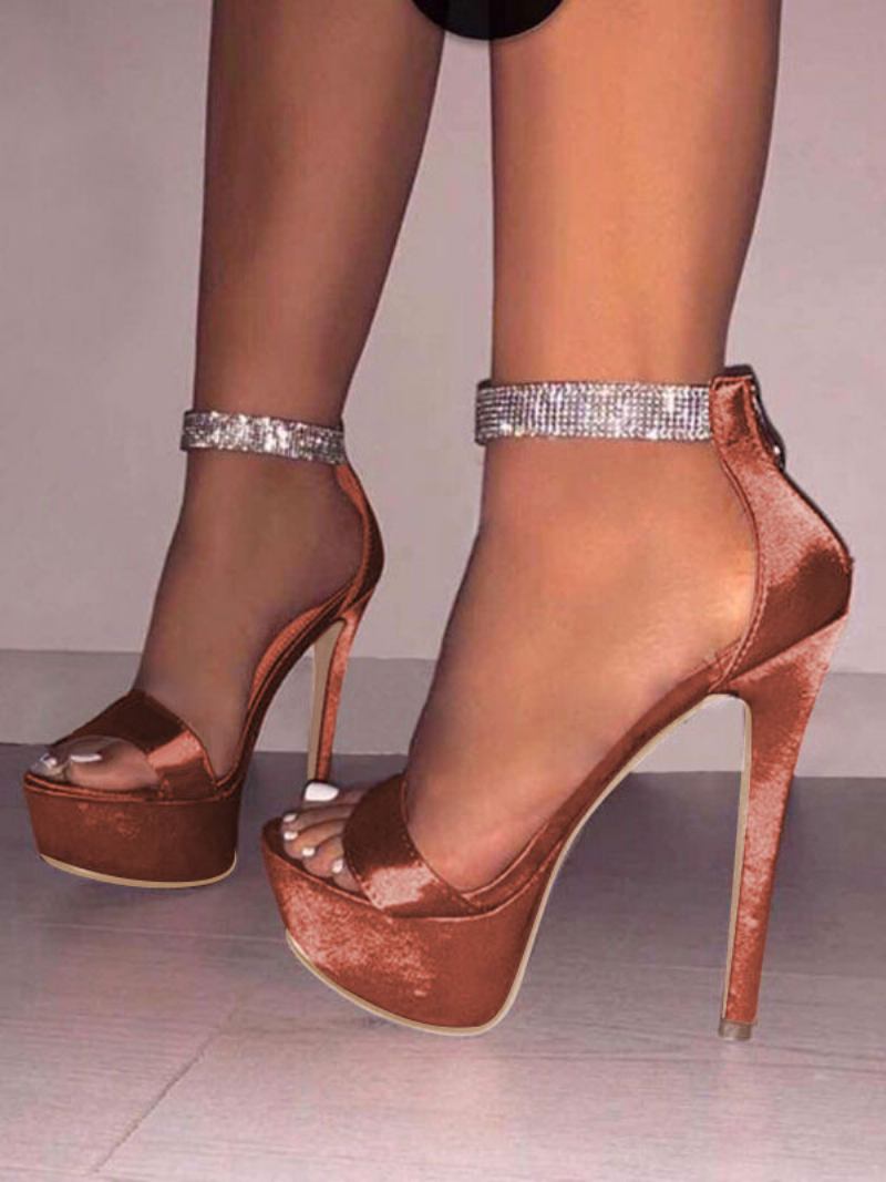 Mulheres Sexy Salto Alto Plataforma Cetim Dedo Do Pé Aberto Strass Sandálias