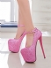 Mulheres Sexy Salto Alto Rosa Dedo Do Pé Quadrado Lantejoulas Tornozelo Cinta Agulha Sapatos