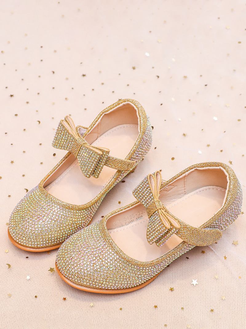 O Florista Calça Sapatas Do Partido Dos Strass Poliéster Ouro Para Crianças