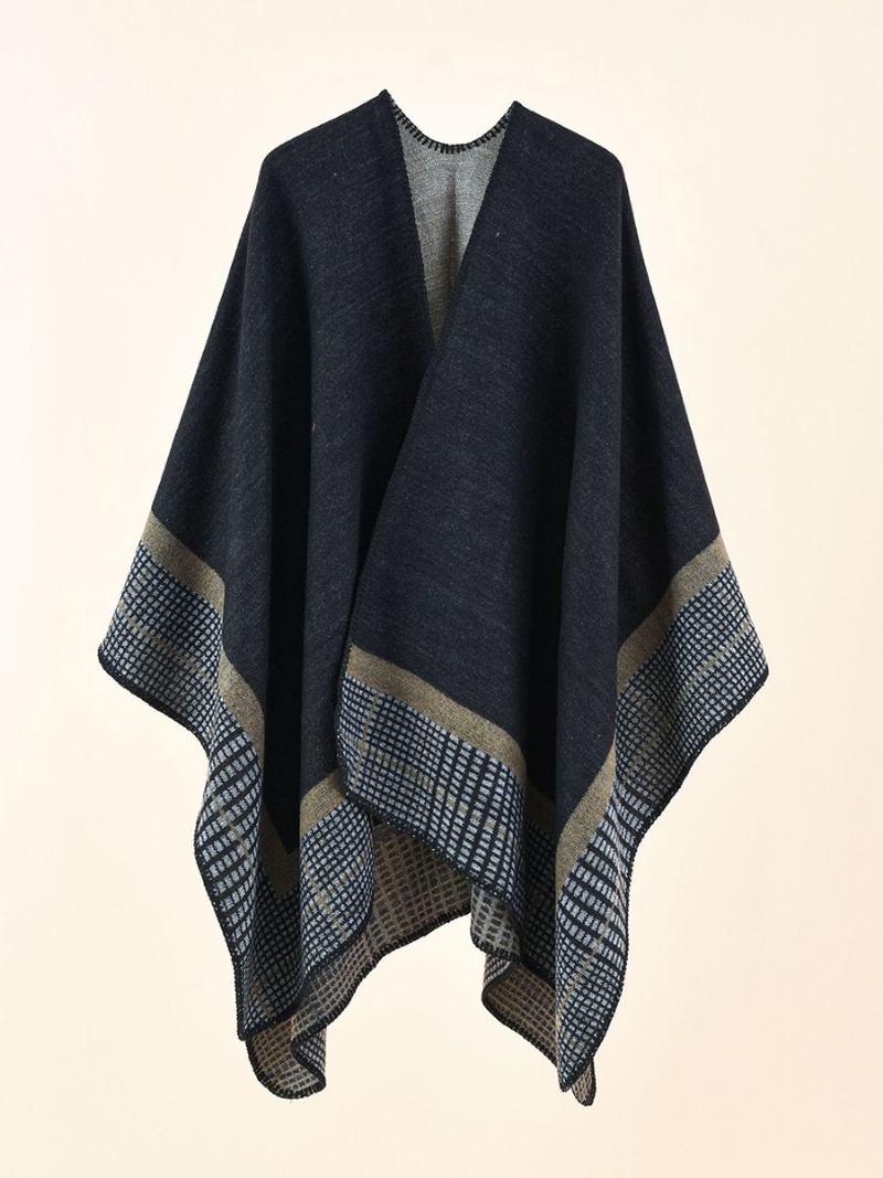 Poncho Feminino Com Capa Verde-oliva Xadrez Primavera Verão Outono Inverno