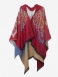 Poncho Feminino Estampado Com Capuz Vermelho Capa Franja Grande