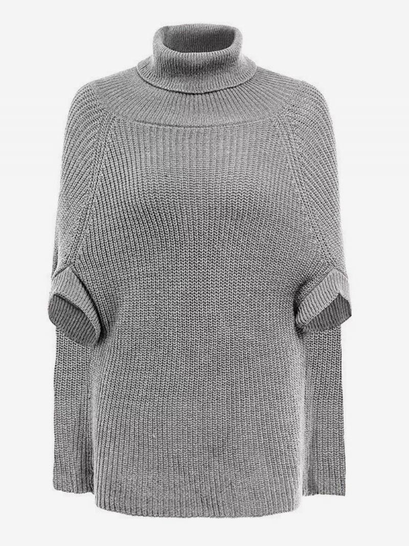 Poncho Feminino Malha Com Gola Alta Preta Casual Capa Outono