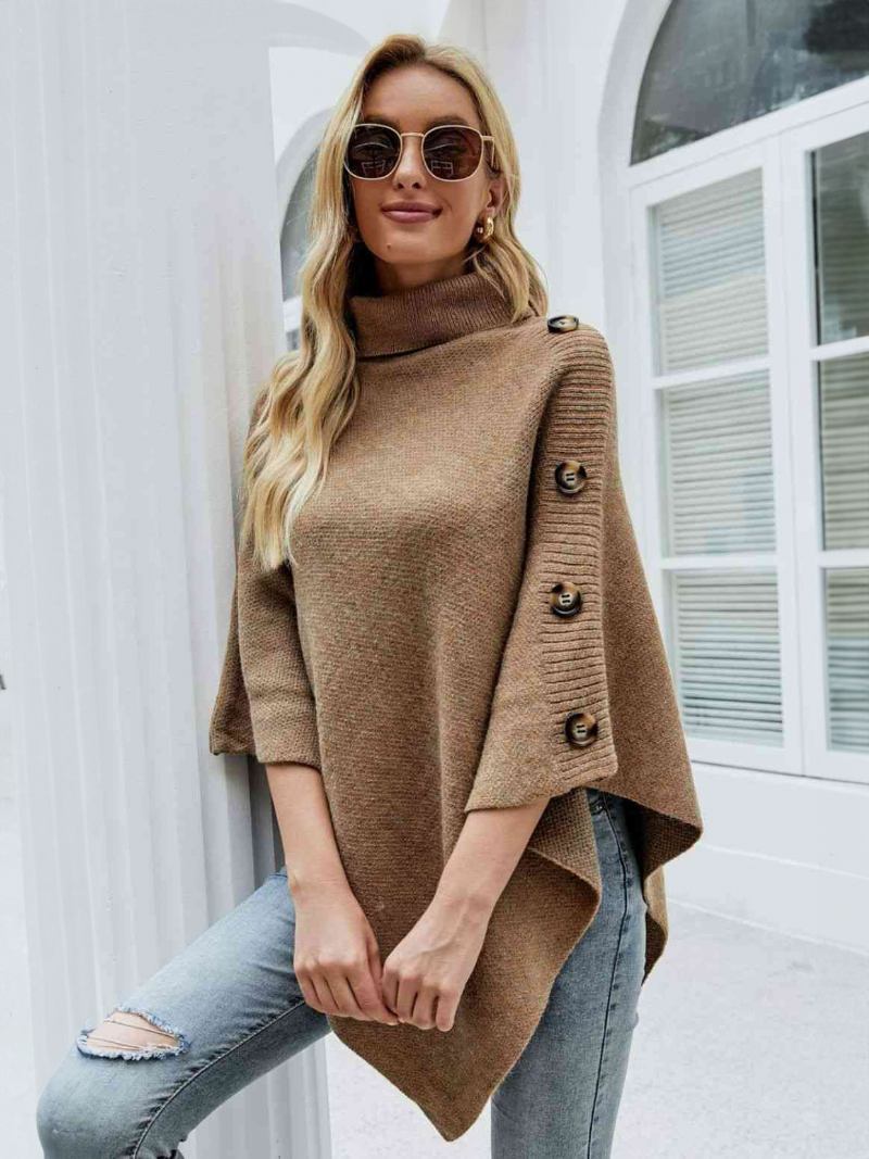 Poncho Para Mulheres Com Gola Alta E Capa Primavera