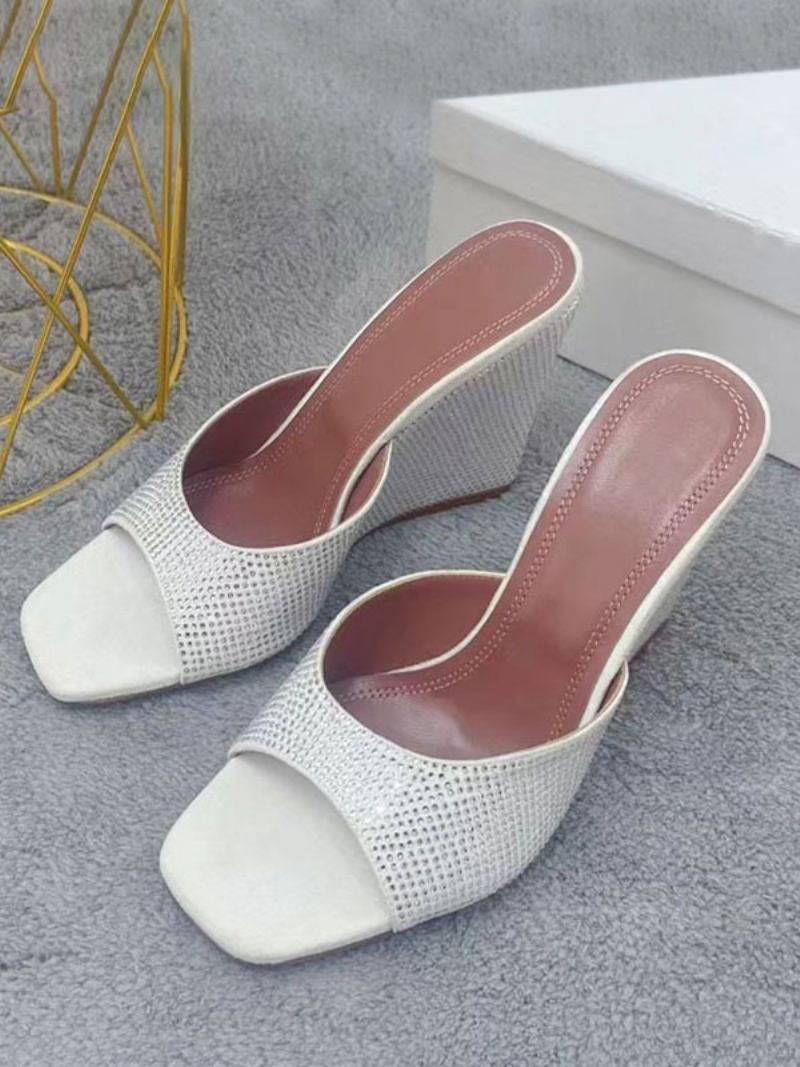 Preto Sexy Cunhas Mulheres Strass Nubuck Baile Sandálias Cunha