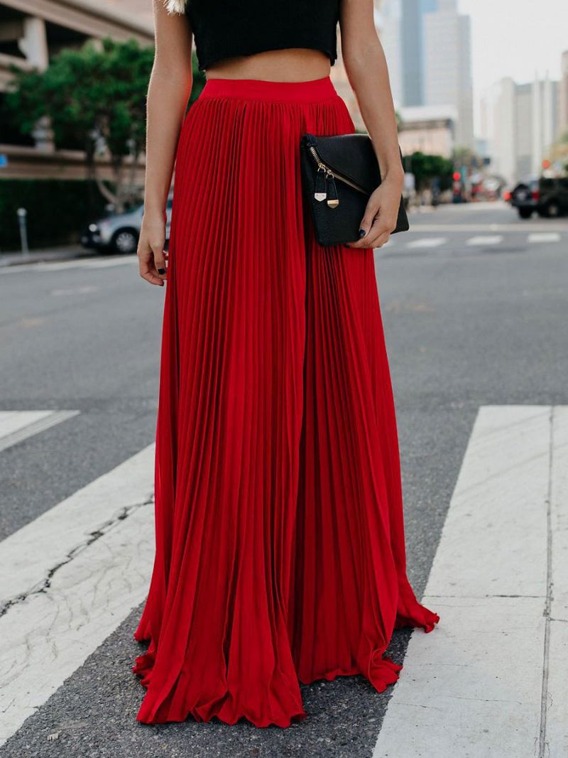 Saia Feminina Rosa Plissada Longa Cintura Levantada Calças Femininas